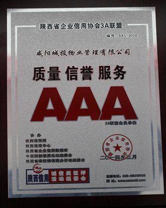 十年磨劍,劍成峰。2011年被中國物業(yè)管理行業(yè)協(xié)會(huì)授予中國物業(yè)管理誠信品牌企業(yè),2014年榮獲陜西省企業(yè)信用協(xié)會(huì)3A聯(lián)盟會(huì)員單位,2014年在國家園林城市創(chuàng)建工作中被咸陽市委、市政府評為“先進(jìn)基層單位”,2012年-2017年連續(xù)5年被上級工會(huì)授予“先進(jìn)集體”,2015年被共青團(tuán)咸陽市委授予“青年文明號”標(biāo)兵單位,2015-2017年連續(xù)3年被咸陽市扶貧協(xié)會(huì)授予“先進(jìn)集體”“會(huì)員單位”稱號,2017年度被咸陽市總工會(huì)授予“咸陽市模范職工之家”稱號。
