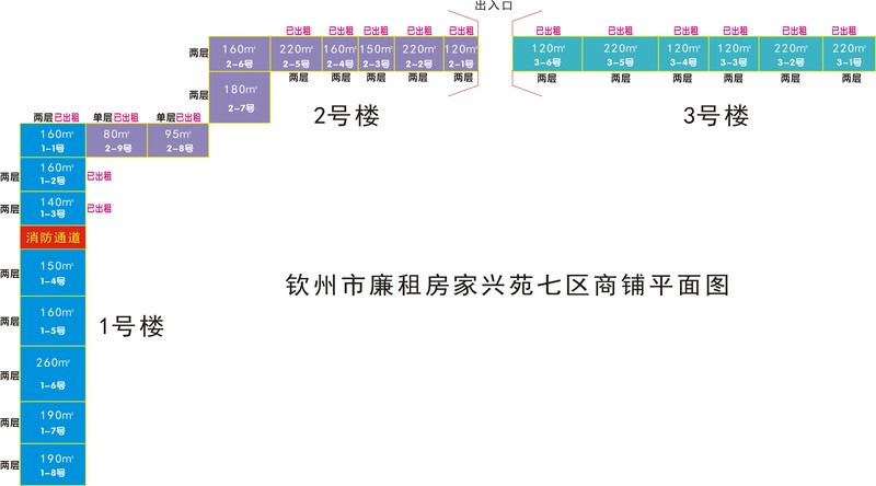 1.本次招租的項目是欽州市廉租房家興苑七區(qū)商鋪,此次招租商鋪共7間,總建筑面積1290㎡,商鋪結(jié)構(gòu)分為上下兩層.