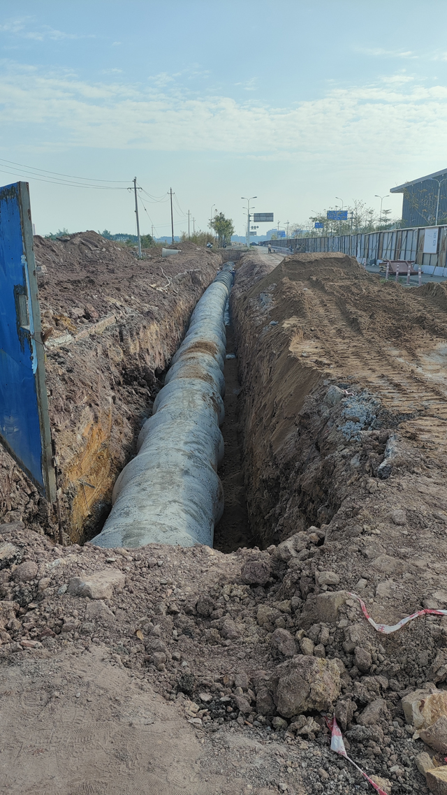 菩提路項目:該項目凌云街至平山東大街段已于11月1日正式開工,施工單位已進場完成全段的清表工作及不良土的清除,已完成洗車平臺及工地大門等施工臨時設施建設,現(xiàn)開挖約300米污水管道、300米雨水管道及完成雨污水管各250米回填砂。