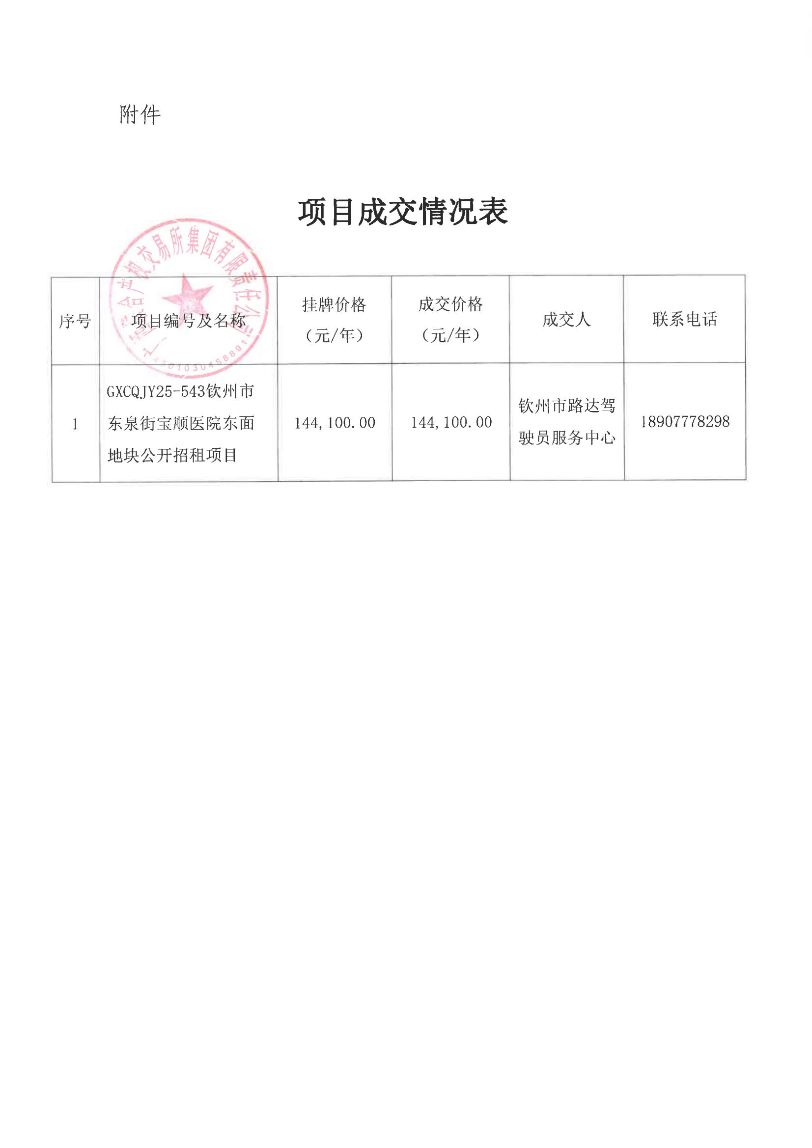 關(guān)于欽州市東泉街寶順醫(yī)院東面地塊公開(kāi)招租項(xiàng)目成交情況的函