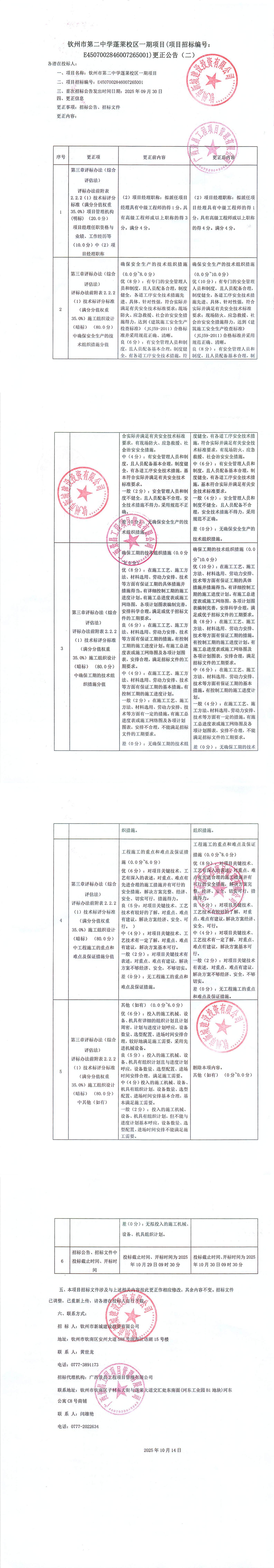 欽州市第二中學(xué)蓬萊校區(qū)一期項目(項目招標編號:E4507002846007265001)更正公告(二)