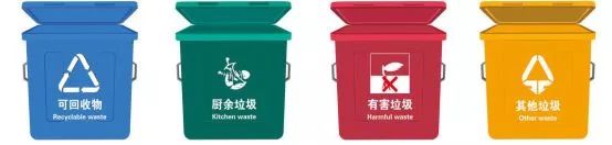 認(rèn)清四色垃圾桶,垃圾分類要清楚,