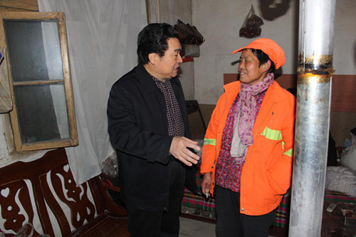 河南街小區(qū)保潔員王菊芹,家中子女常年在外與家里少有聯(lián)系,老伴又年老多病無(wú)法務(wù)工,還要撫養(yǎng)外孫上學(xué),僅憑她做保潔的收入在河南街村租住了一間不及12平米的小屋作為三人的居所。趙明海首先感謝了她對(duì)公司默默作出的貢獻(xiàn),鼓勵(lì)她說(shuō):“困難都是暫時(shí)的,要相信在城投集團(tuán)的正確領(lǐng)導(dǎo)下,我們物業(yè)公司會(huì)越來(lái)越好,只要努力工作,公司會(huì)想方設(shè)法為職工解決困難!蓖瑫r(shí)要求工會(huì)和團(tuán)支部要積極與上級(jí)溝通,取得支持,切實(shí)為困難職工辦實(shí)事,辦好事。王菊芹對(duì)公司領(lǐng)導(dǎo)在春節(jié)前夕前來(lái)看望慰問(wèn),激動(dòng)地緊緊握住公司領(lǐng)導(dǎo)的手連聲表示感謝。