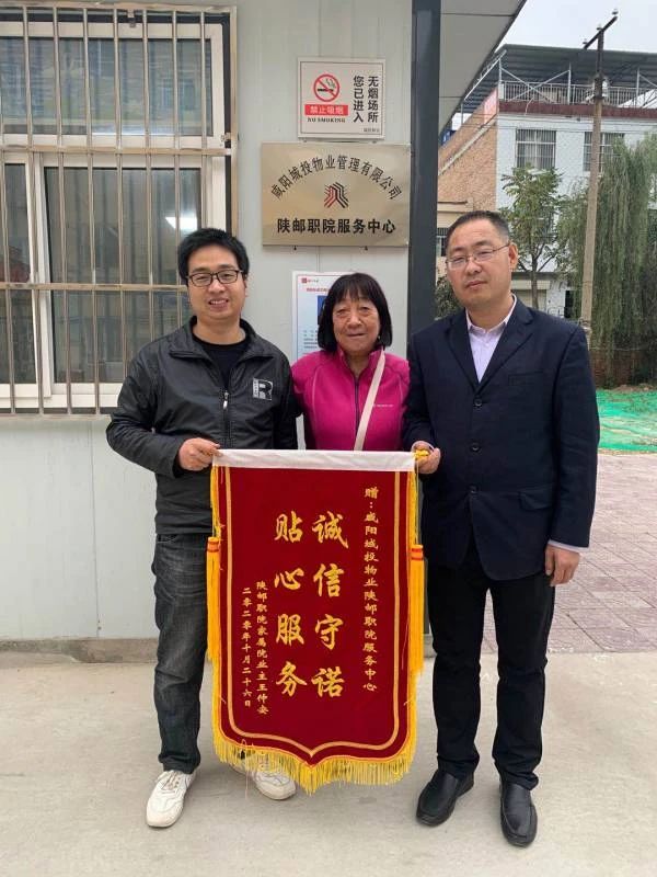 王阿姨是陜郵職院家屬院3號樓的業(yè)主。子女因?yàn)楣ぷ髅β岛苌僭谏磉,購買水電、維修等瑣碎事,都是物業(yè)人員手把手教老人如何在手機(jī)上操作。平時還幫助老人解決一些日,嵤,老人為了表達(dá)內(nèi)心的感激之情,送來了錦旗。