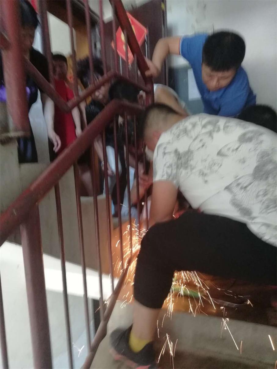 為避免孩子再次受到傷害,維修人員事先對小男孩的頭部做了適當?shù)谋Wo,隨后,用切割機將護欄切割開,隨著“咔嚓”兩聲輕響,一分鐘不到,欄桿鋼條兩端被割斷。5點25分,小女孩毫發(fā)未損,安全脫身。所有的人那顆懸著的心總算放了下來。